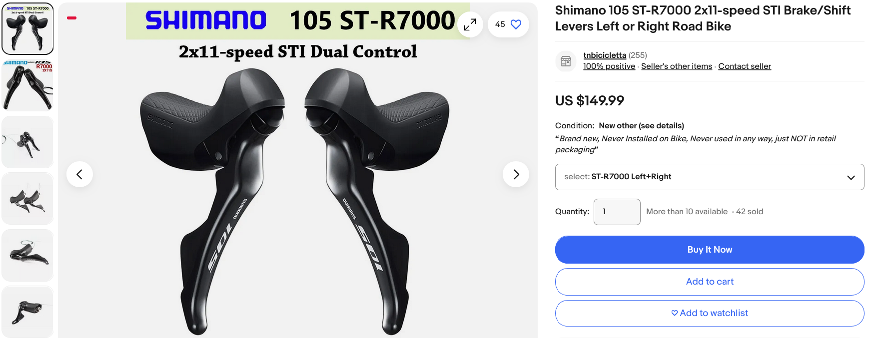Image URL https://www.ebay.com/itm/394589407527 Vendor Ebay Parts Shimano 105 R7000 Shifters Part variations Shimano 105 R7000 Shifters ST-R7000 Pair Clamp Price $149.99 Listing status Available Listing type Buy it now Shipping type Free Listing grade New Listing condition New